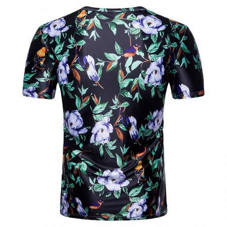 Men's 3D Printed Short-Sleeved T-Shirt Hawaiian Style Floral Printed Pattern Casual