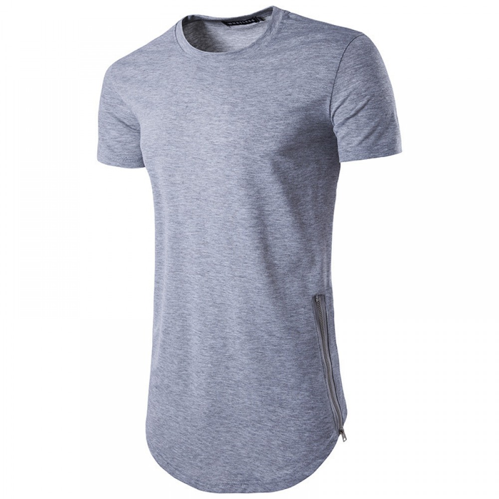 Men's Fashion Style Double Zipper Long Round Neck T-Shirt Multicolor Plus Size Short-Sleeved T-Shirt