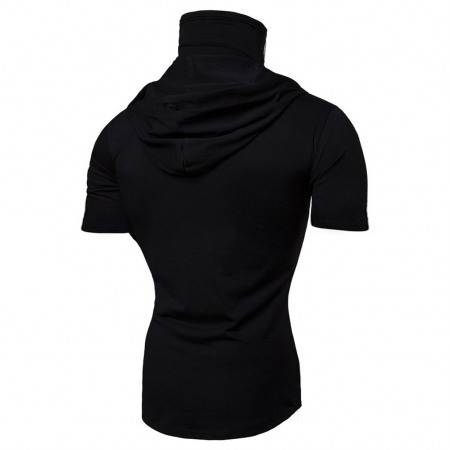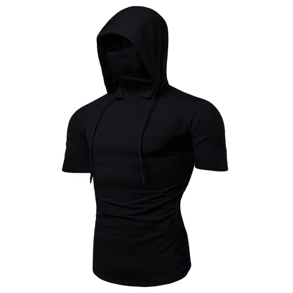 Men's Personality Simple Stretch Fitness Mens Ninja Suit Hooded Short Sleeve T-Shirt Mask