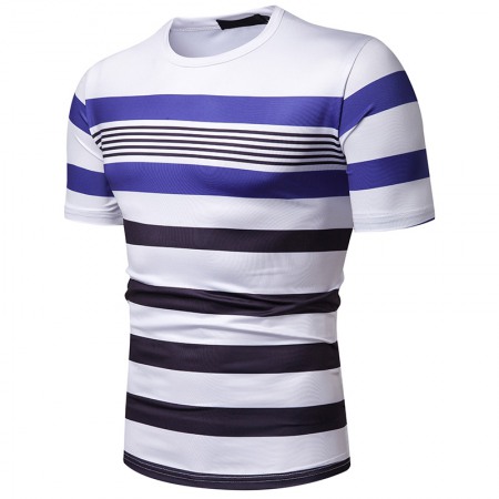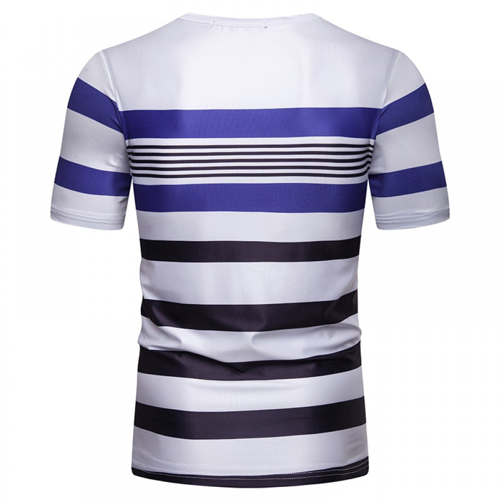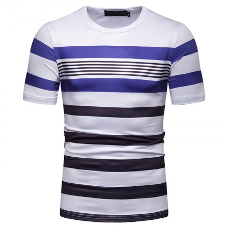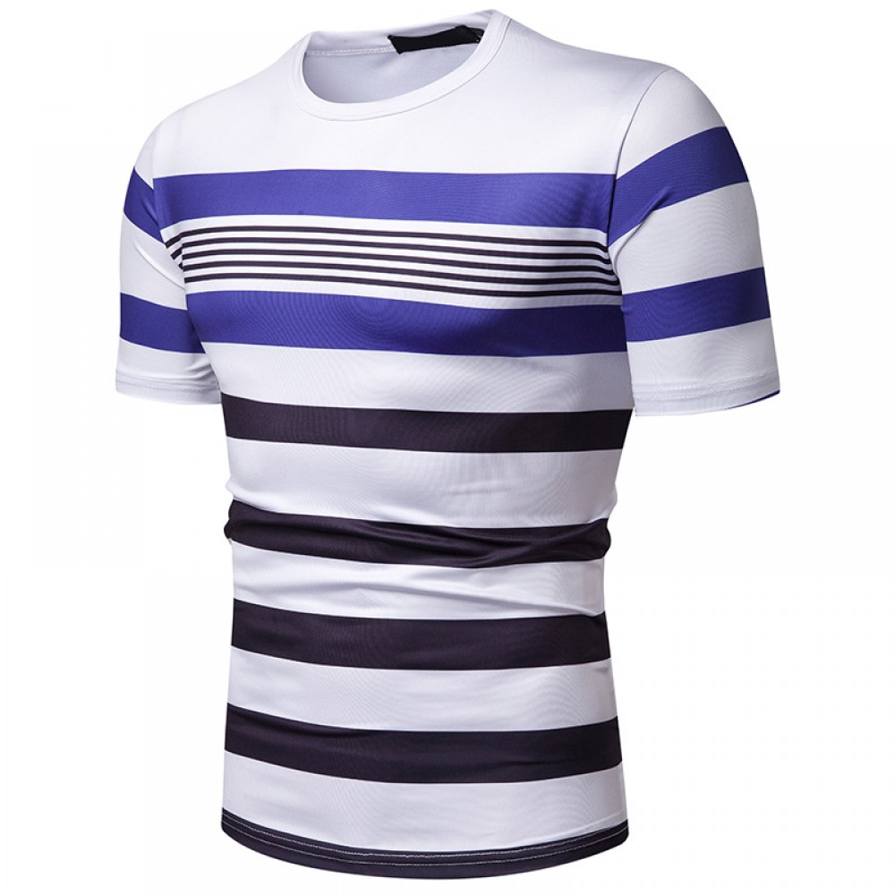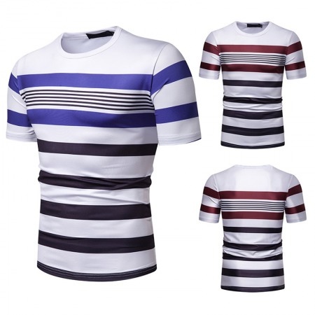 New Summer Men's Short-Sleeved T-Shirt Mens Contrast Striped Slim Casual T-Shirt