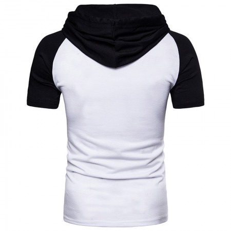 New Plus Size Raglan Sleeves Hooded Placket Color Matching Short-Sleeved Hooded T-Shirt