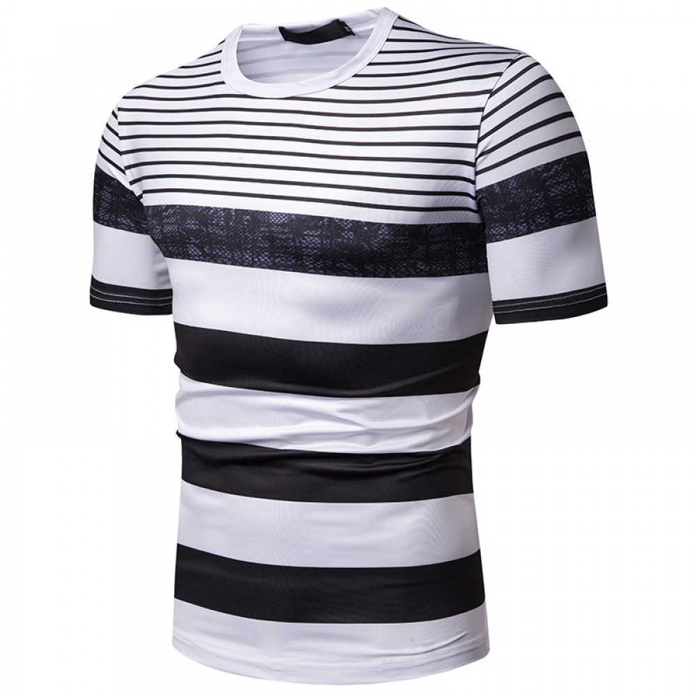 New Summer Men's Short-Sleeved T-Shirt Men's Contrast Striped Slim Casual T-Shirt