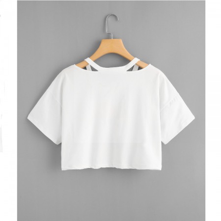 Summer New V-Neck Pineapple Applique Short Sleeve T-Shirt