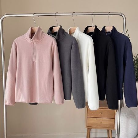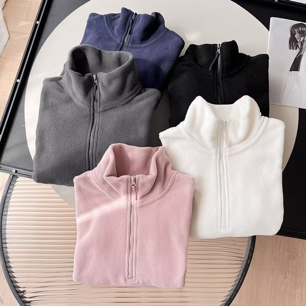 Women Jacket Half Zip Pullover Stand Collar Sweatshirt